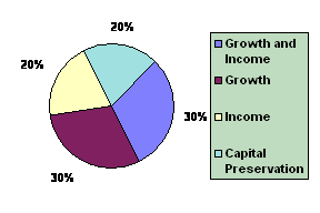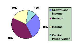 Why Invest in Mutual Funds?A mutual fund pools the money of its shareholders and invests in many stocks, bonds and other securities. Each fund has an investment objective shared by its investors---to provide current income, for example, or long-term growth. Each mutual fund holds many securities and is thus diversified and less likely to respond to the fluctuations of the market as a single stock or bond would. Four investment strategies:Growth Designed to maximize the value of your investment over time, growth funds invest in stocks that have a strong potential for providing above-average growth. Growth and Income Designed to provide both regular income and long-term growth in the value of your investments, growth and income funds invest in stocks, bonds or a combination of both. Income Designed to provide a regular stream of income, income funds invest in interest-paying bonds, stocks that pay regular dividends, or a combination of both. Capital Preservation Designed to maintain a stable price share while providing current income, capital preservation funds include money and market funds. Life-Stage Financial PlanningThe charts below illustrate how investment objectives at four different stages of life might be met using mutual funds.